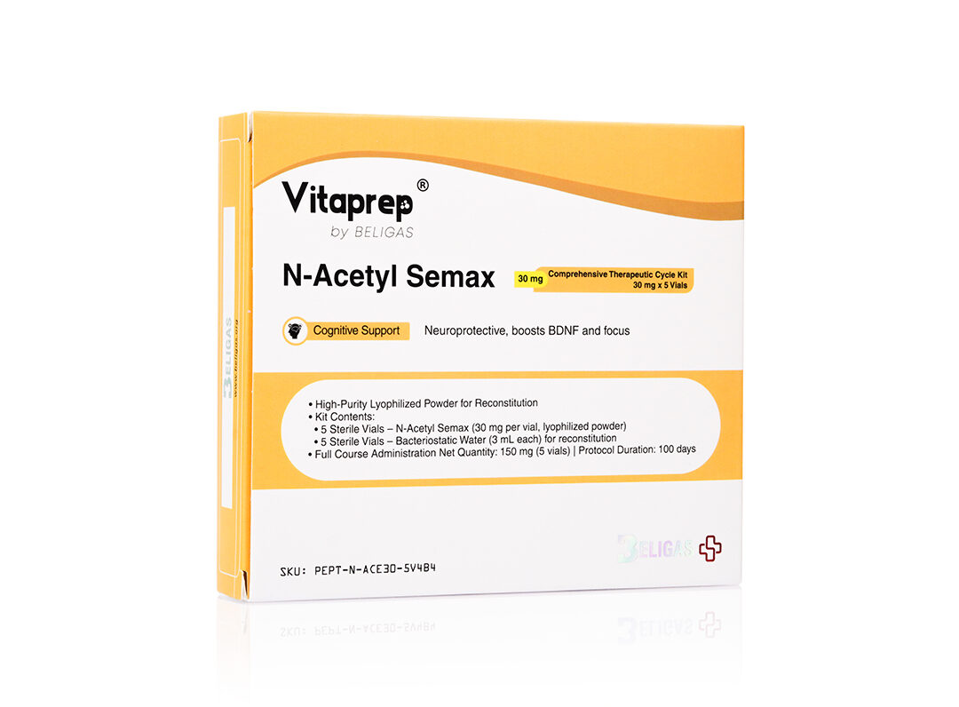 • Concentration: 150 mg N-Acetyl Semax per full course (5 vials)